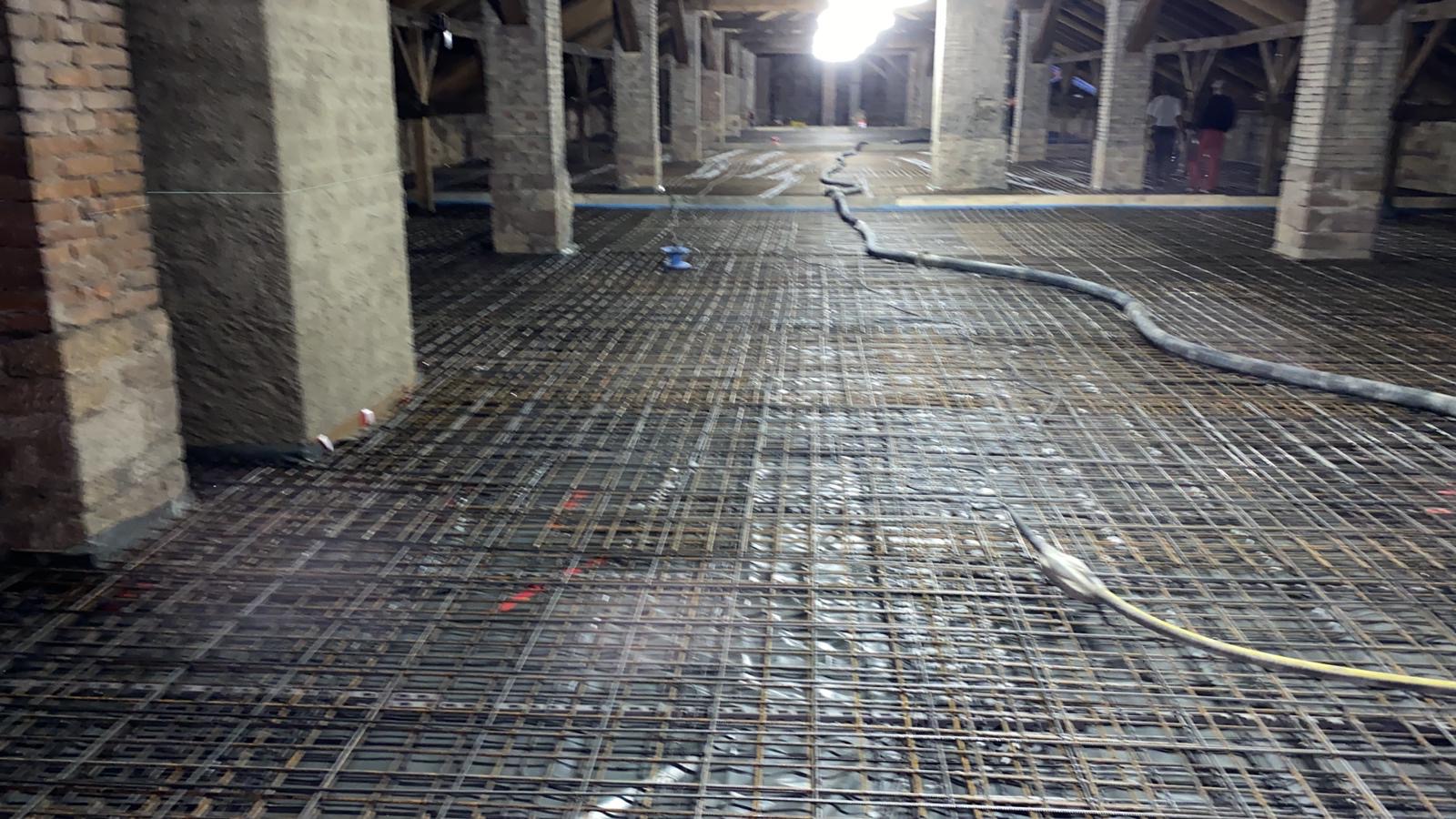 Unter erschwerten Bedingungen musste beispielsweise im Dachgeschoss eine neue Stahlbetonbodenplatte mit einer Größe von ca. 1.000,00 m2 erstellt werden. Hierzu musste das Deckengewölbe vorab mit über 500.000,00 Liter Beton verfüllt werden.